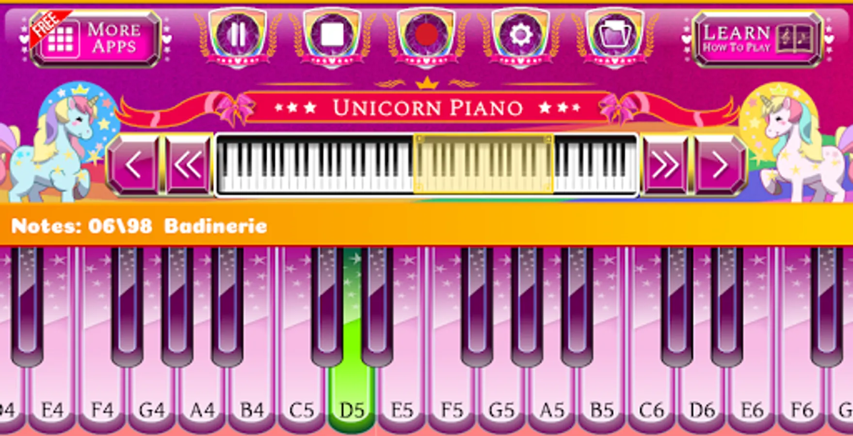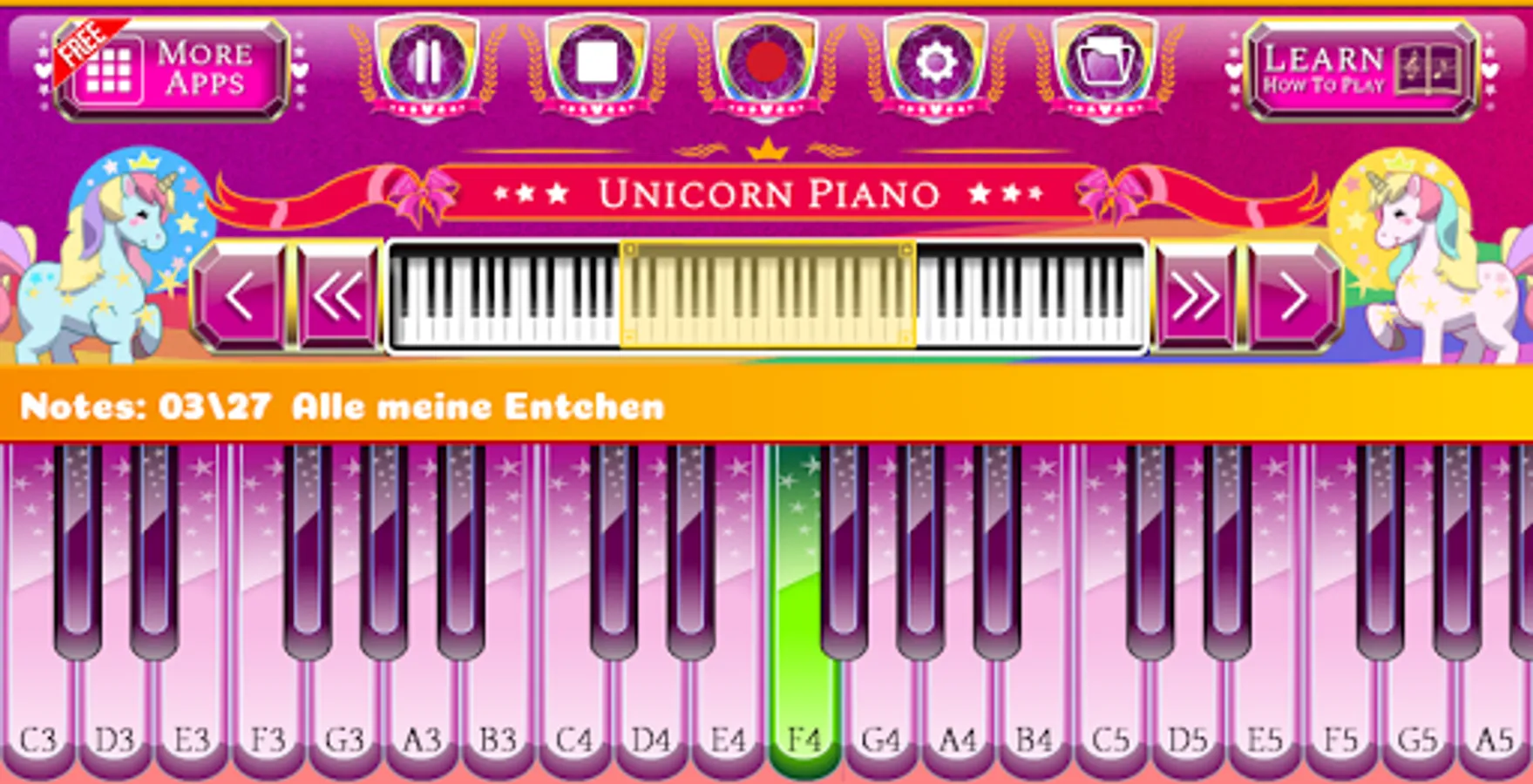 Do you want to learn the piano? Now it's possible with Unicorn Piano application. This music app is very simple to use - even for children. You can choose from many different songs!