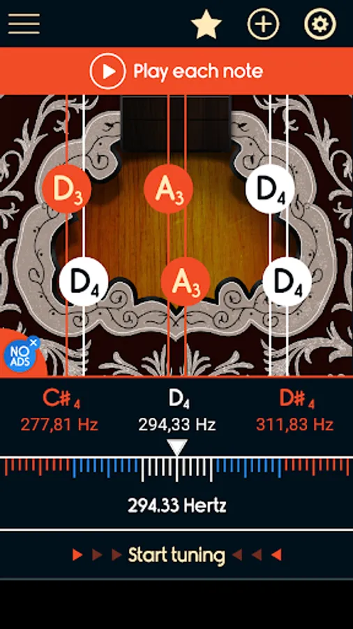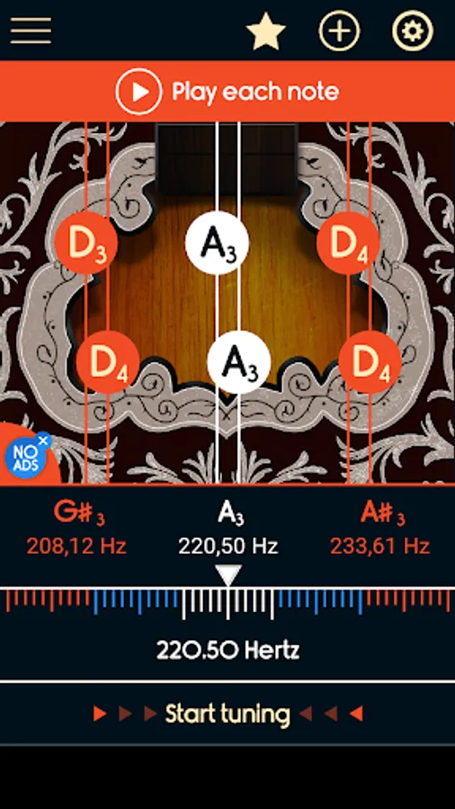 If you need any help with tuning your bouzouki, turn on the auto tuner. The application will recognize the sound played by you and help you tune each string.