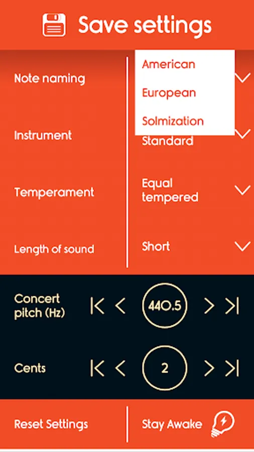 - the ability to set the frequency of sound "a" (concert pitch) in Hz