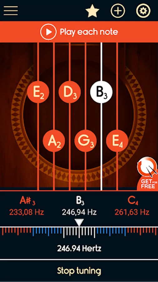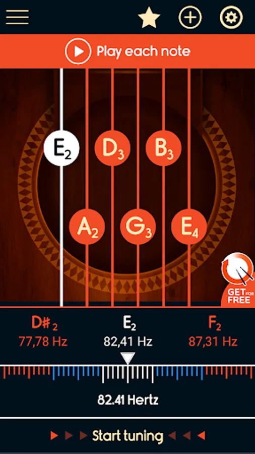 If you need any help with tuning your guitar, turn on the auto tuner. The application will recognize the sound played by you and help you tune each string.