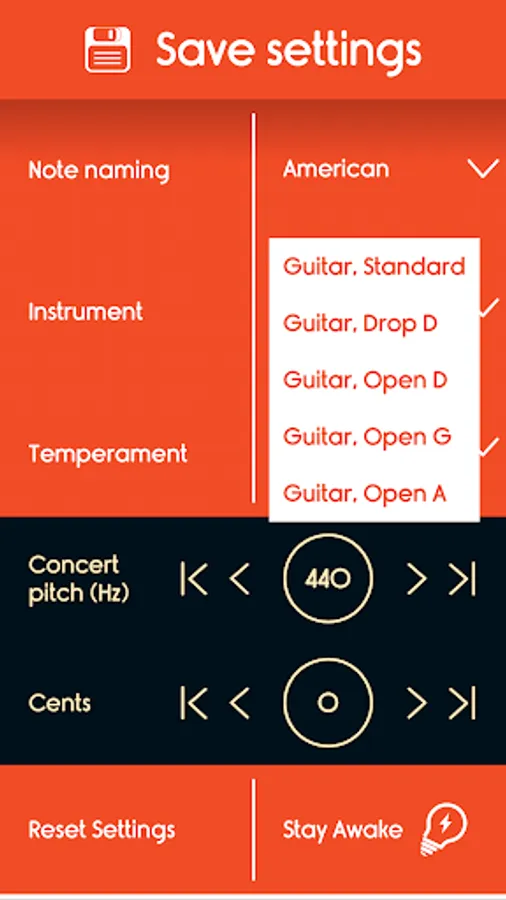The algorithm has been adapted to recognize sounds of guitar most effectively. To get the best result of automatic tuning, play the sound on the single string few times.