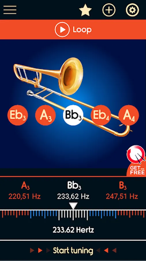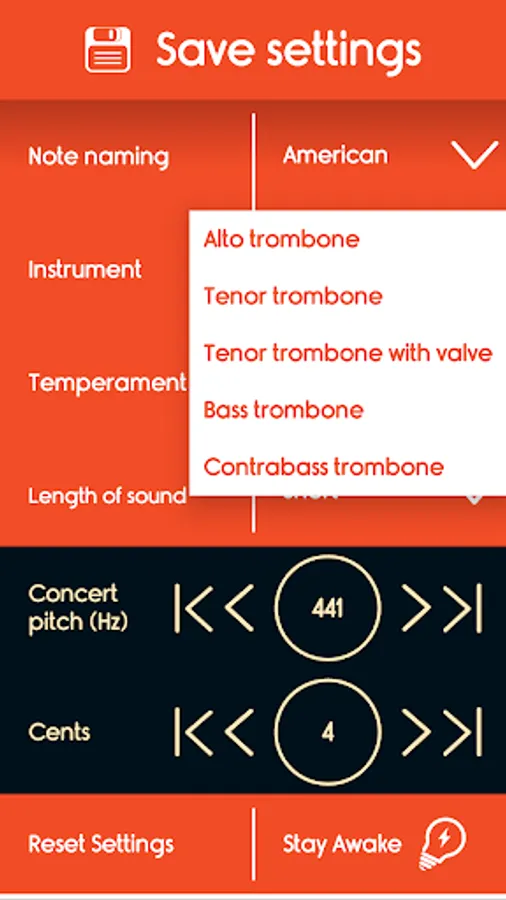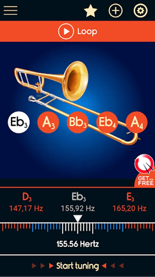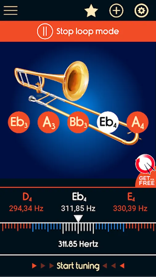 If you need any help with tuning your trombone, turn on the auto tuner. The application will recognize the sound played by you and help you tune trombone.