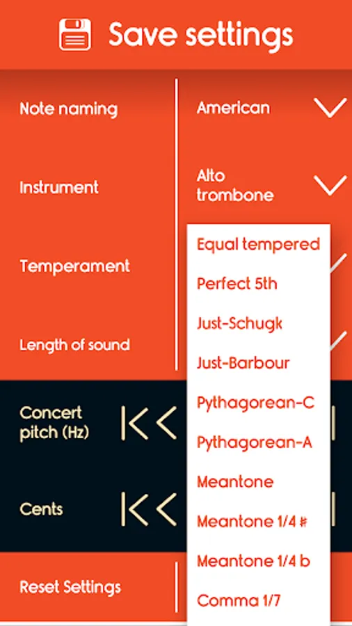 - the ability to set the frequency of sound "a" (concert pitch) in Hz