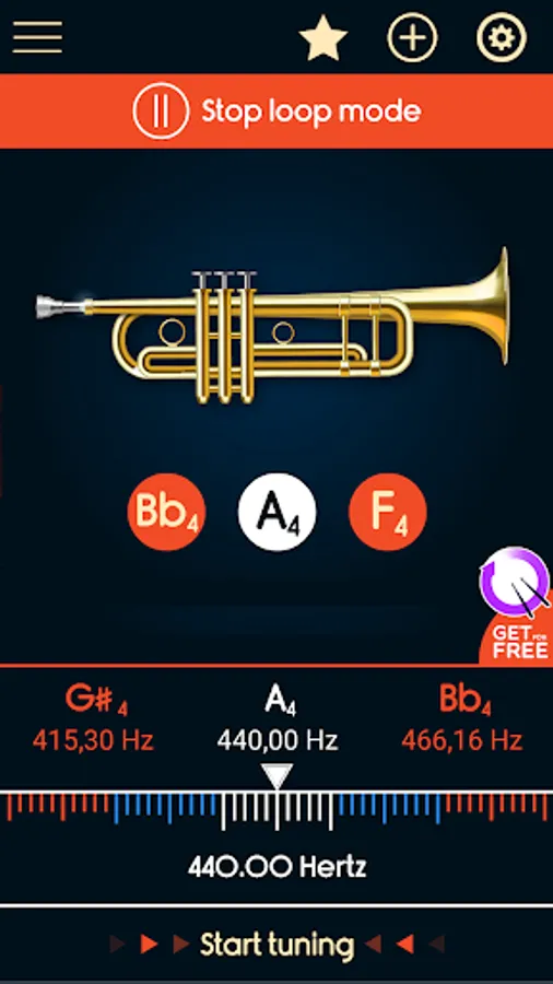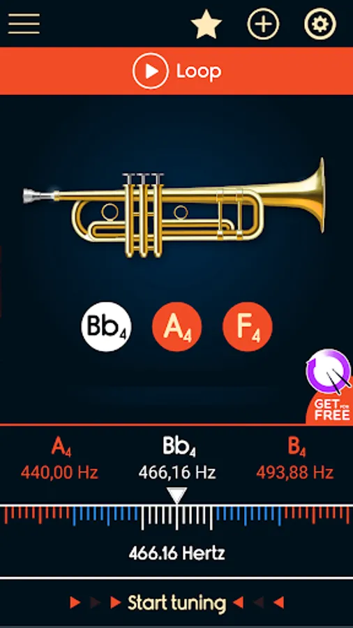 If you need any help with tuning your trumpet, turn on the auto tuner. The application will recognize the sound played by you and help you tune trumpet.