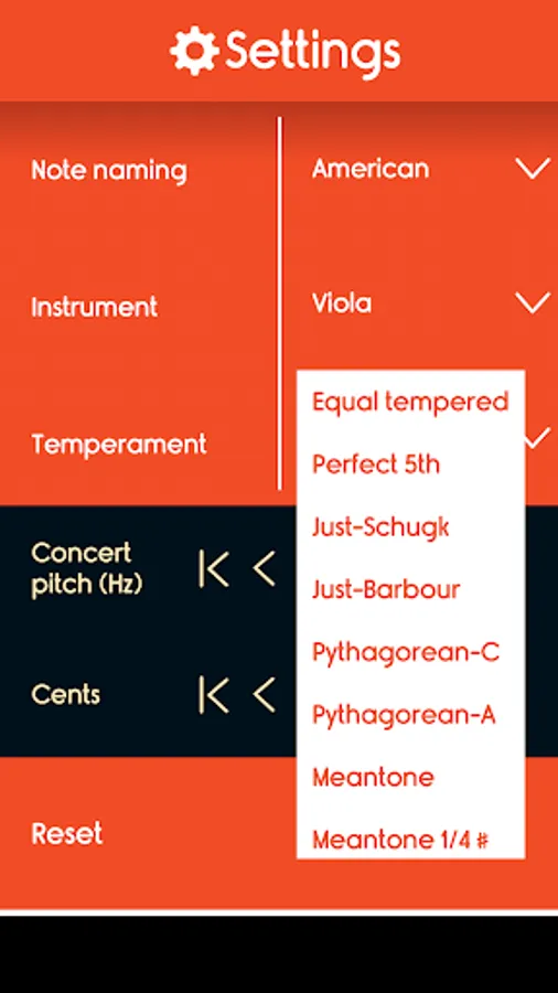 - the ability to set the frequency of sound "a" (concert pitch) in Hz