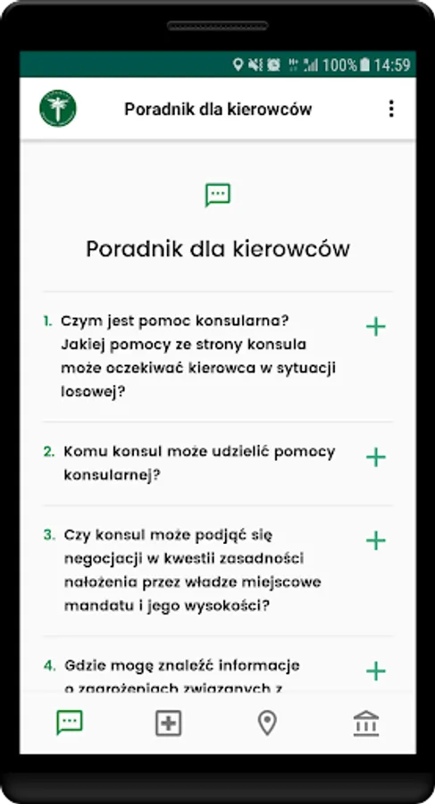 The application contains information dedicated to drivers performing international road transport and information on consular assistance provided by Polish diplomatic missions.