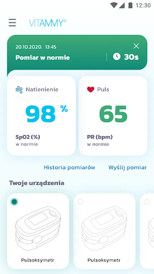 The VITAMMY application automatically saves the measurement results and informs you whether the measurement result is normal (green color of the message), requires further observation and subsequent measurements (yellow color of the messages), whether immediate consultation with a doctor is necessary (red color of the message).