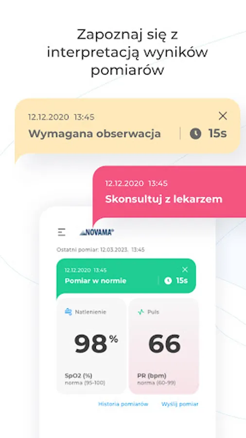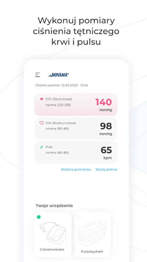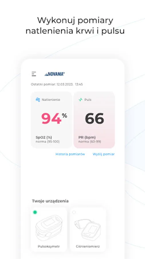 The application allows you to read data from selected devices equipped with Bluetooth communication, i.e. from Novama Respire pulse oximeters and Avita blood pressure monitors.