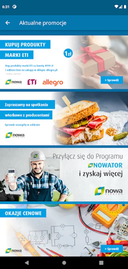 In the application you can also see the current promotion for products in the Nowa Elektro chain.