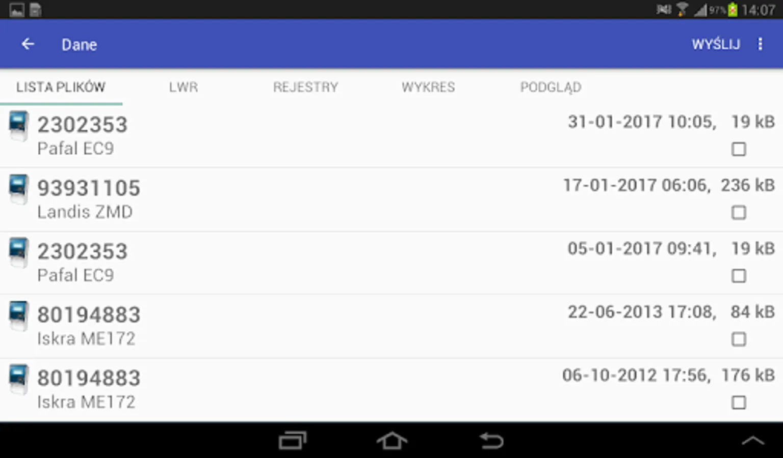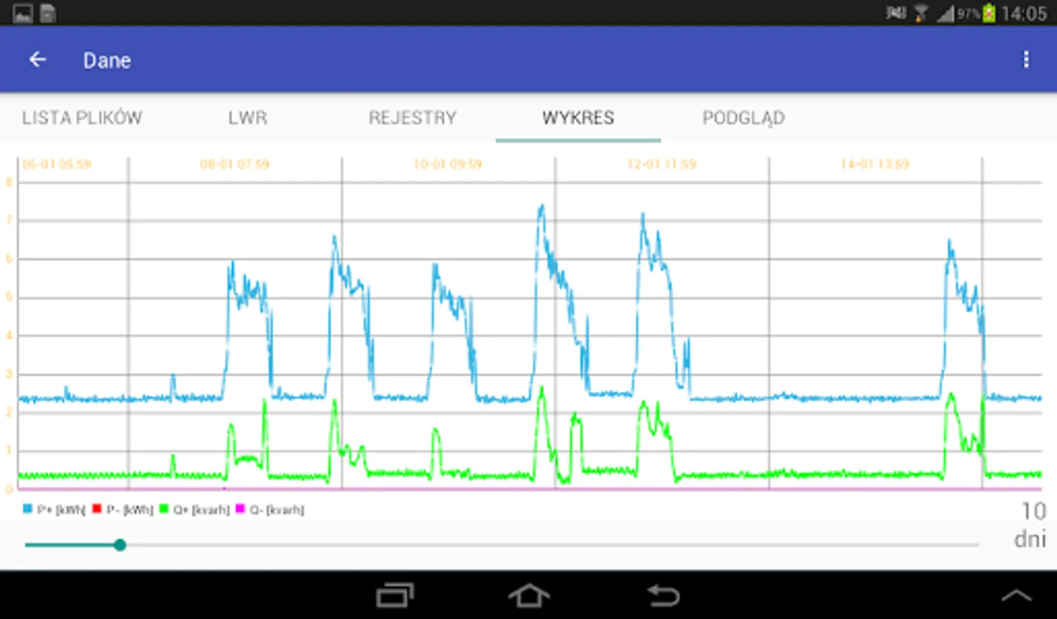 An optical head with USB connection is required for reading. The program allows ongoing review of the read data along with a graph of the load profile and qualitative profile. Enables direct data upload to https://webenergia.pl/