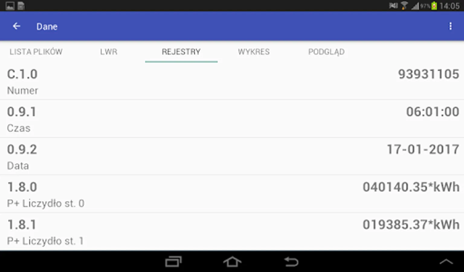 The application is used to read data from electricity meters, heat meters, gas meters, etc.