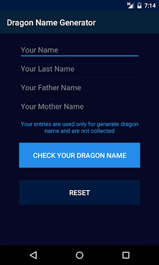 Input your name and names of your parents to get the name of your dragon.