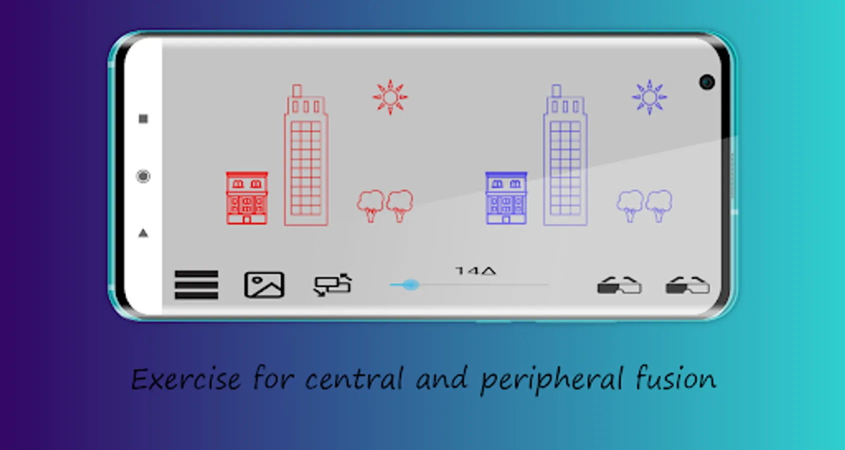 Use duochromatic glasses for exercises with tranaglyphs. Exercise should only be performed on the recommendation of an optometrist.