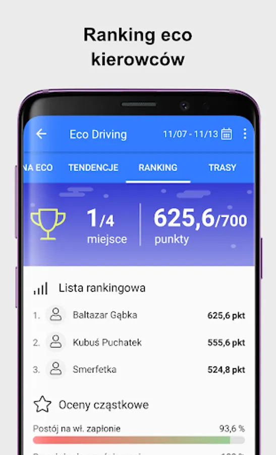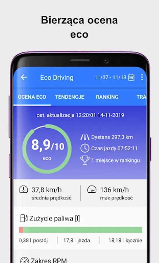 The application allows drivers to monitor their driving style in the context of ecodriving and compare the results with other employees.