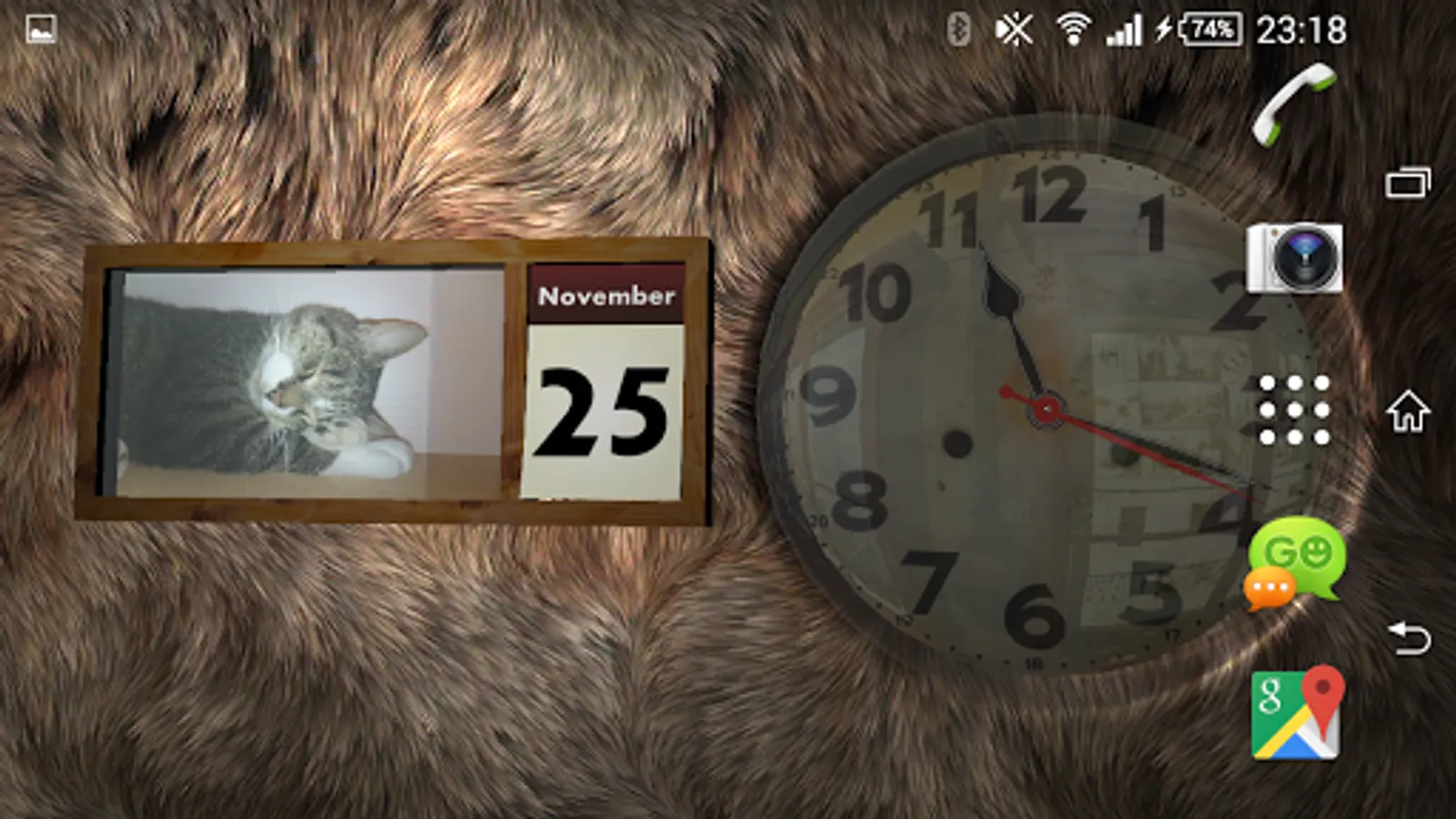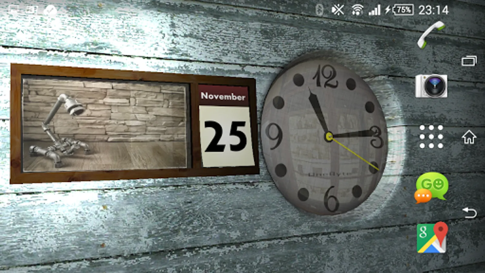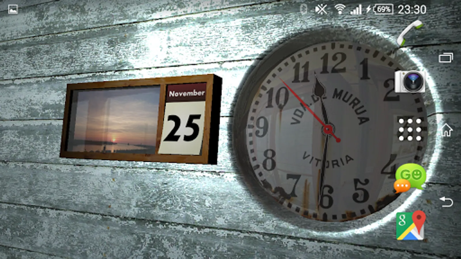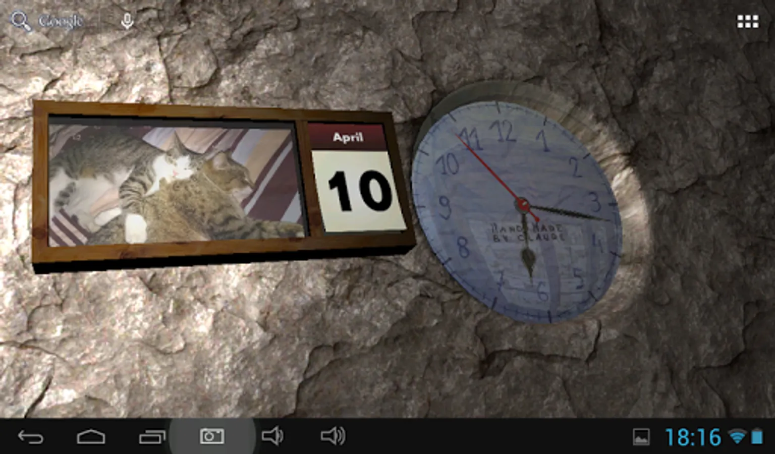 Wallpaper showing a clock and calendar with photo frame made in 3D technology with the most common mobile devices graphics library OpenGL ES 2. The watch is an interactive wallpaper she follows the movement of the finger across the screen, which causes it to rotate in space. At the same time clock performs smooth rotational movements that exacerbate the effect of animation.
