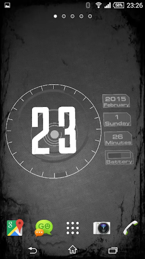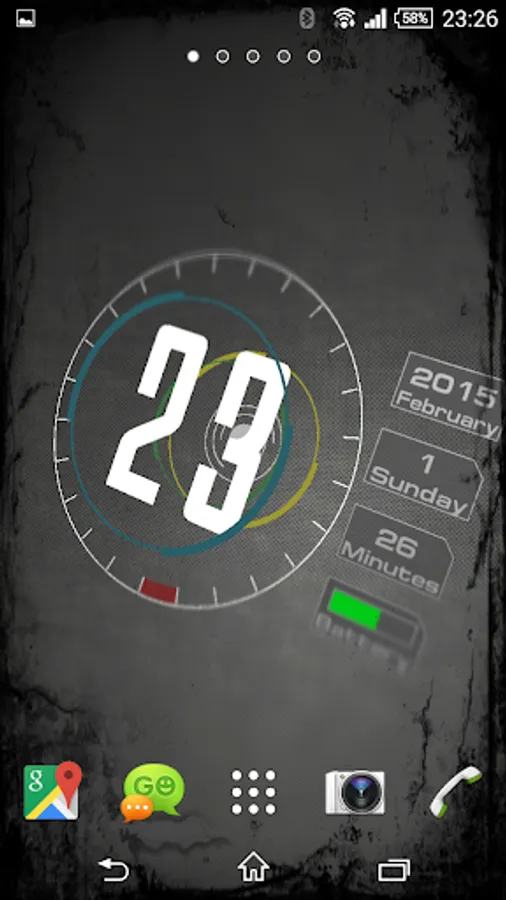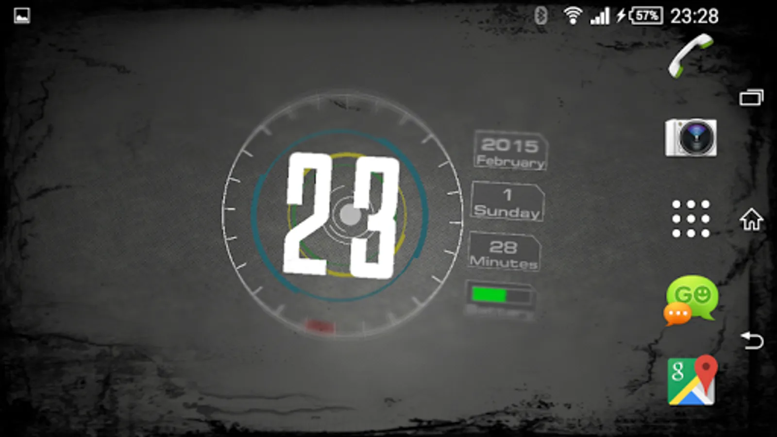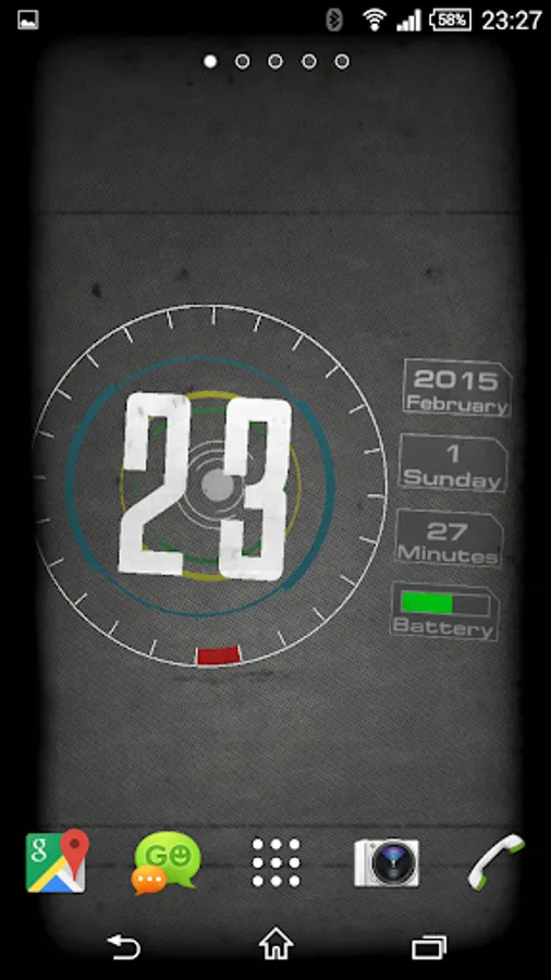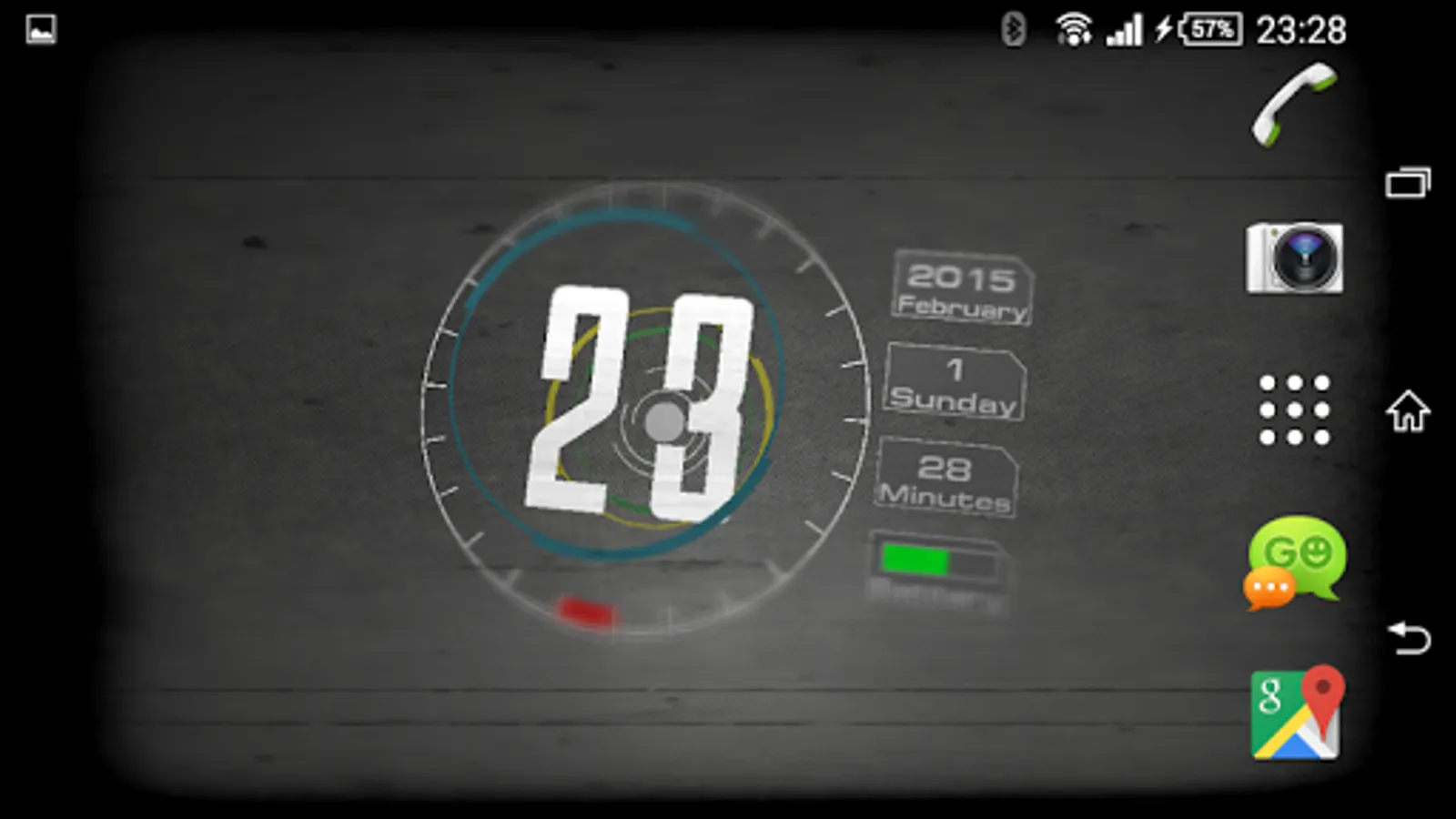 Wallpaper of a clock, calendar and battery indicator - made in 3D technology with the most common mobile devices graphics library OpenGL ES 2. Analog watch in a modern way shows the time. On the right side there is also a calendar and battery charge indicator.