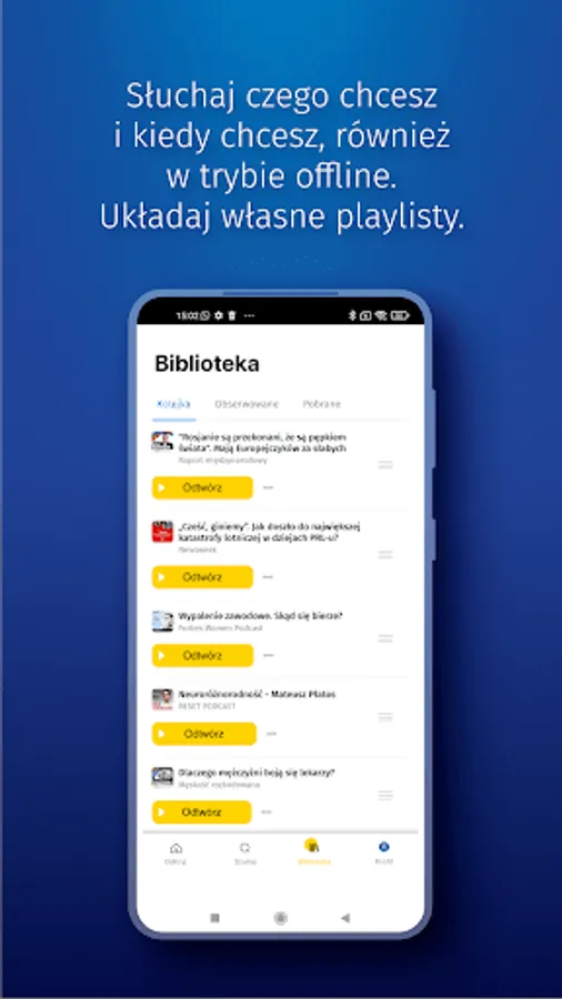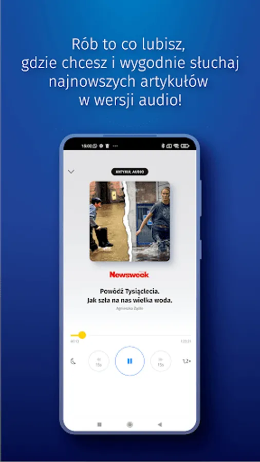 The application allows you to conveniently listen to articles saying, among others, about the latest events, news from the world of politics, sports, business, as well as longer content presenting opinions, comments and analyzes on the same areas. Additionally, you will find interviews and discussions on timeless topics related to motherhood, social matters and culture.
