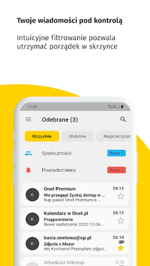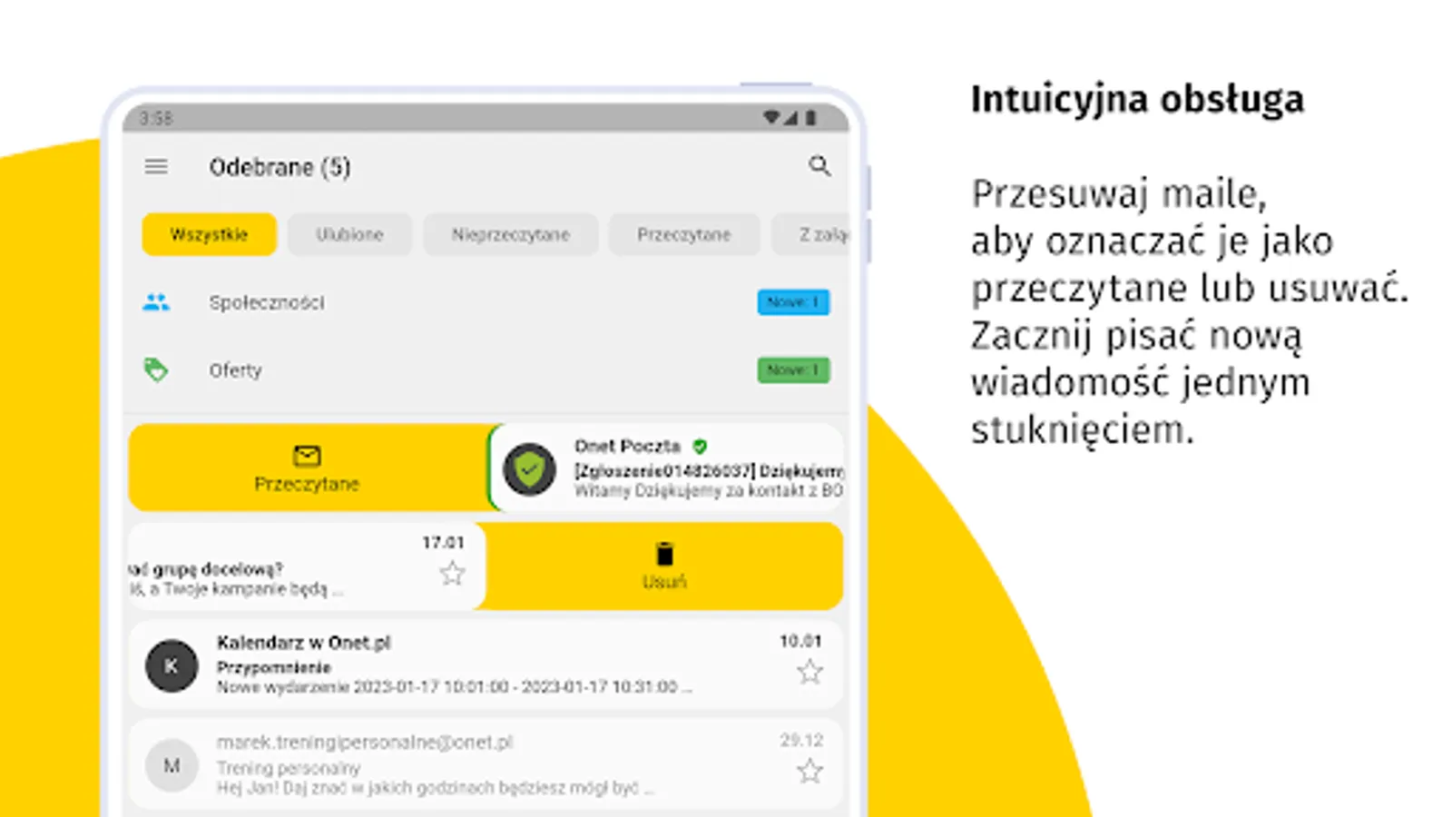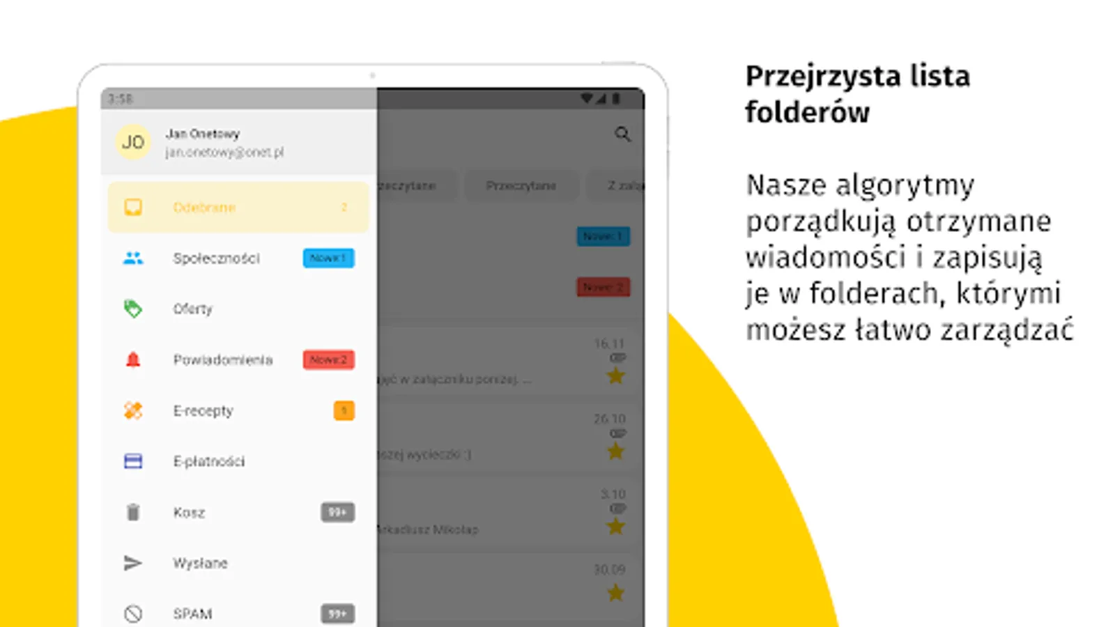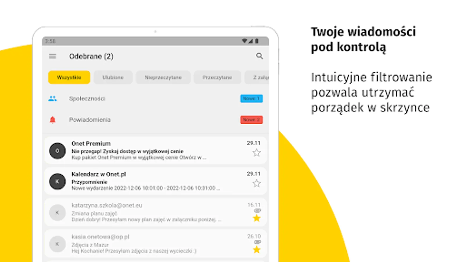 Our application allows you to handle all your Onet’s email accounts at once. Viewing, reading, replying to emails and attaching files is now easier than ever! Just a single click to add a mailbox and enjoy all the benefits of Onet Poczta.