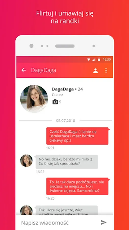 This is the most important function of a dating application. We focused on threading messages, thanks to which conversations with women and men are more dynamic. You liked a woman or a man in the photo - just write. Just one click to start meeting new people.