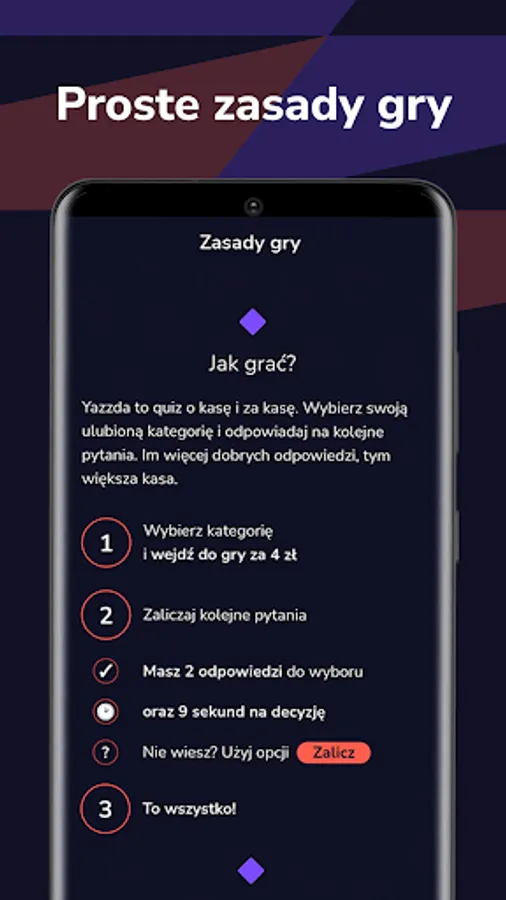 Yazzda is a new dimension of intellectual entertainment. This is a real-time cash and cash register quiz. Choose your favorite category and enter the game. Each question takes 9 seconds to think and two possible answers to choose from. The number of questions in one game is unlimited - you play as long as you give correct answers, and the more correct answers, the more money.