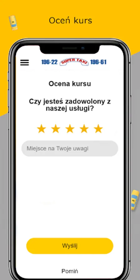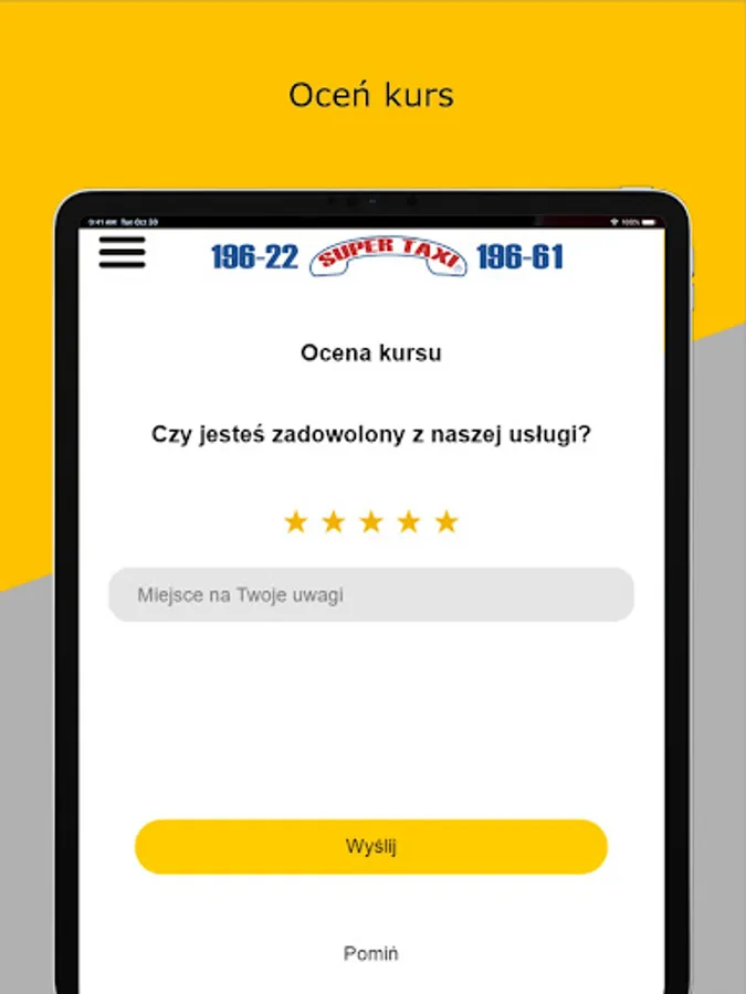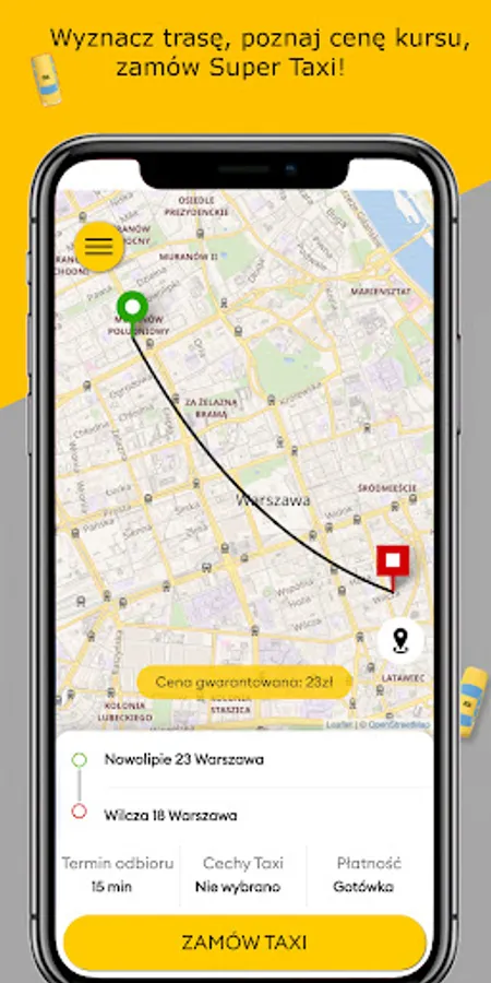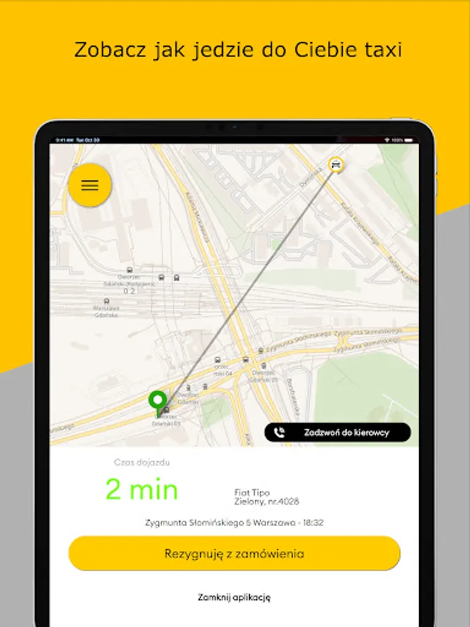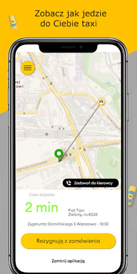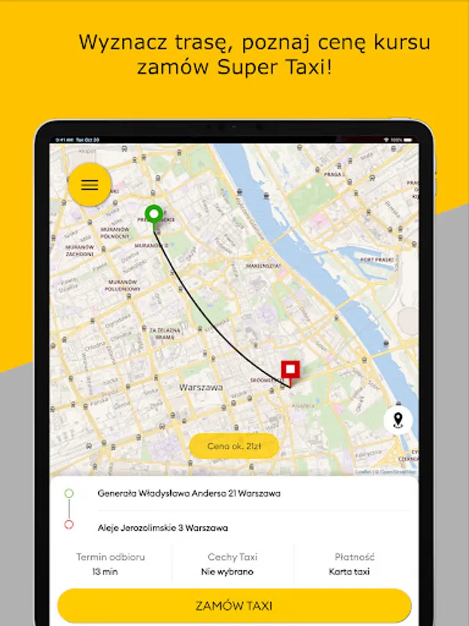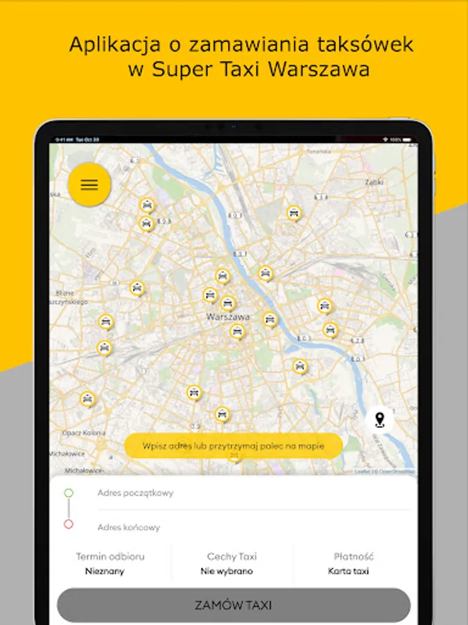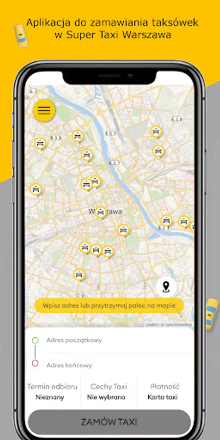Free application used to order taxis in corporations Super Taxi 22 196 in Warsaw.