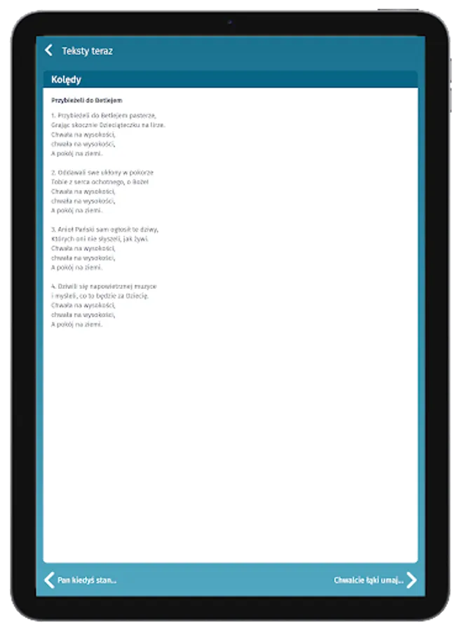 A clear and functional menu allows you to quickly find the song or information you are looking for. In addition, you can change the font size and use the application while offline. The messages update every time you connect to the internet.