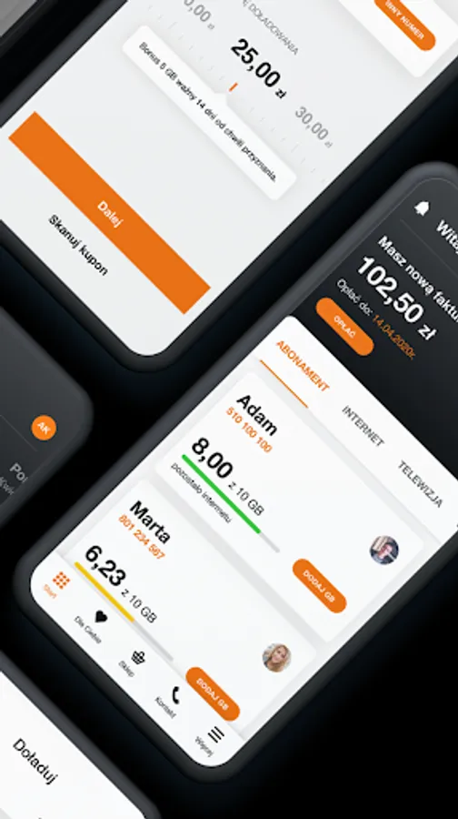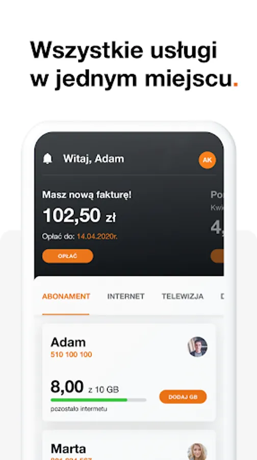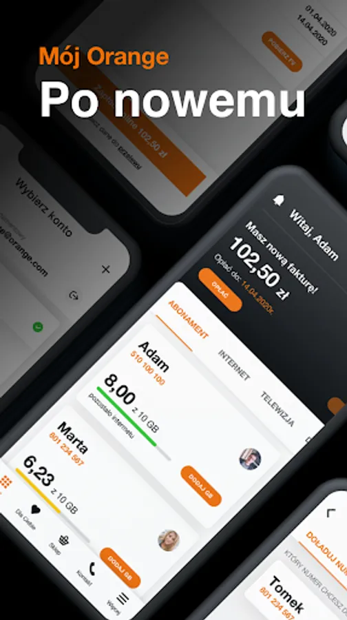 Are you the account owner? You turn on the application and you have a quick preview. And after logging in with the e-mail you use to log in to orange.pl, you can fully manage your account.