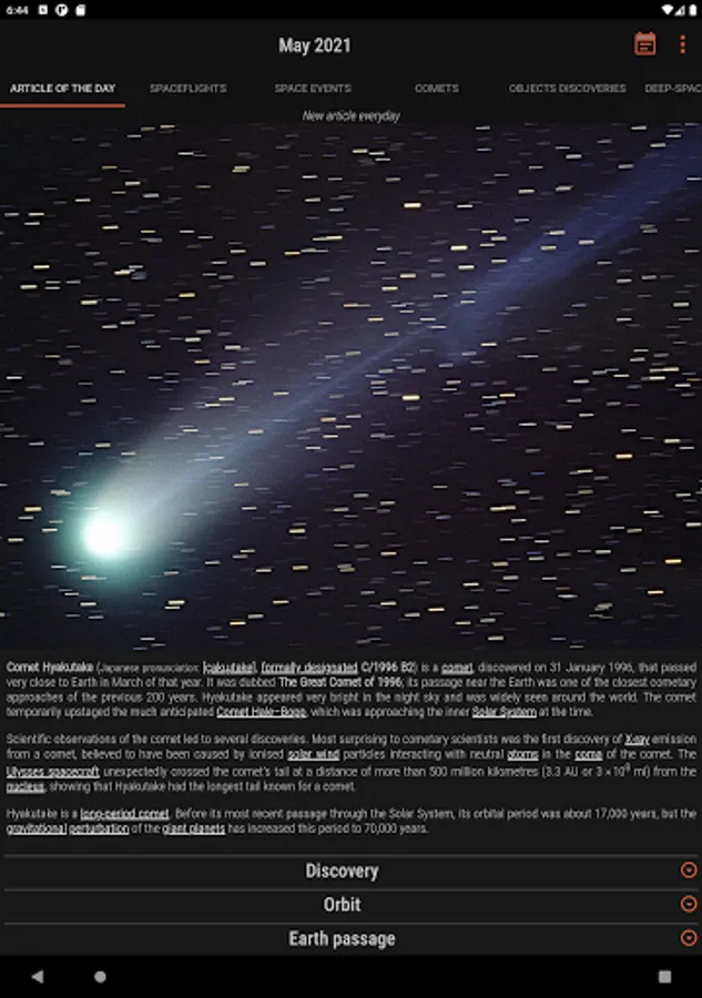 Space Oddity app is strictly connected with Wikipedia, so all the included information are reliable and fresh (content is updated remotely each time you open the app).