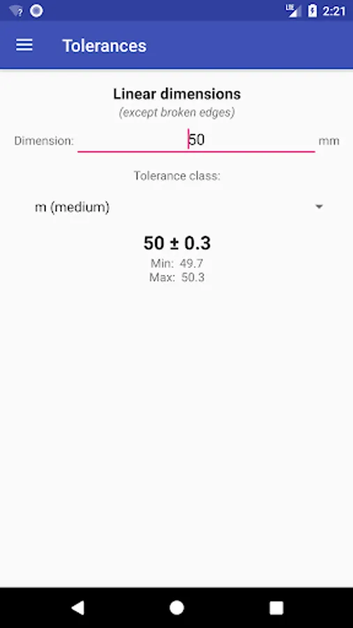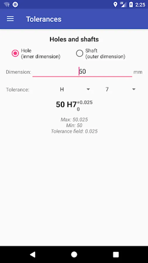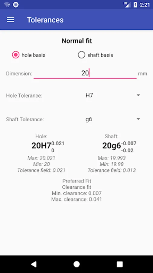 Calculation of clearances and interference at fitted joints.