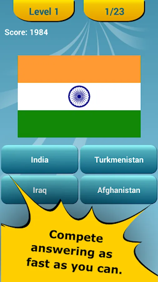 - at every level there are 23 countries flags (a total of 230 national flags to guess!),