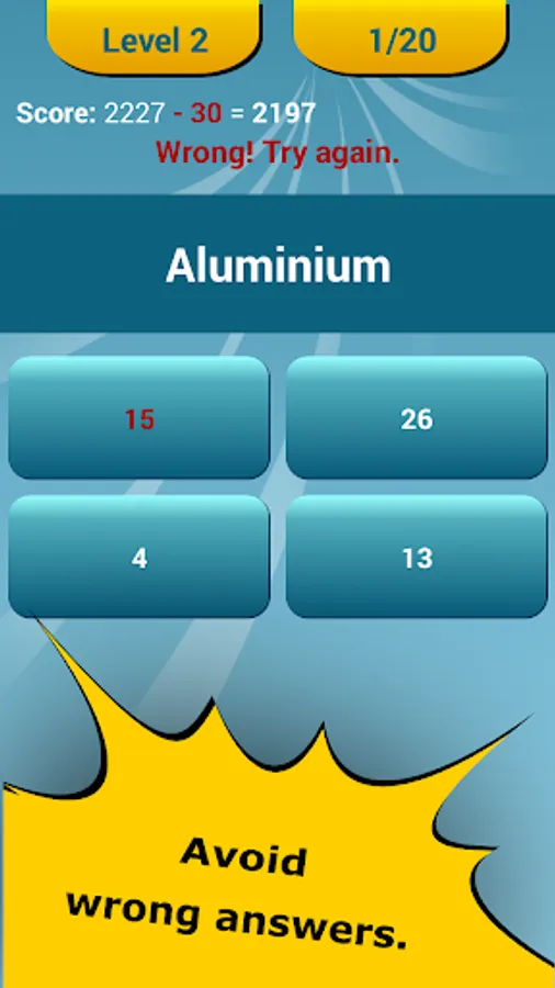 - for levels 2, 8, 14, 20, 26 select correct atomic number of the chemical element,
