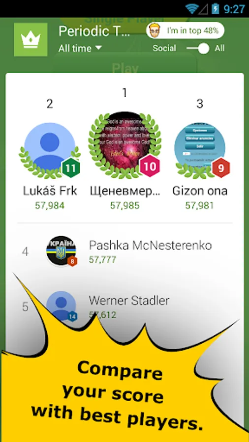 Test yourself by comparing your score with the best ranked online and become a master of chemistry!