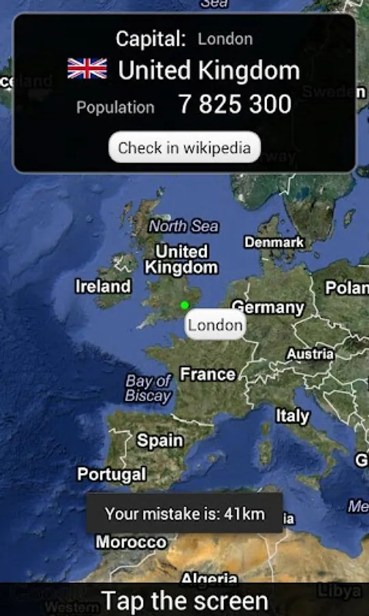 Find a town on the map. You have 10 rounds and over 500 cities. In each city to find. After your selection will display relevant information about the city/capital. You can also go directly to the Wikipedia page to find out more about the country and the city. After 10 rounds, you will display the information of the number of kilometers for which a total mistake. If you do not know where to go on vacation, or just want to have fun and learn something to choose our application.