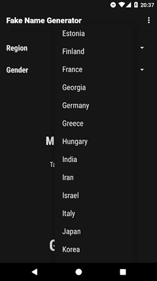 App uses most popular names and surnames for a chosen country and gender and creates random combinations (thousands of them!). The database is still expanding.