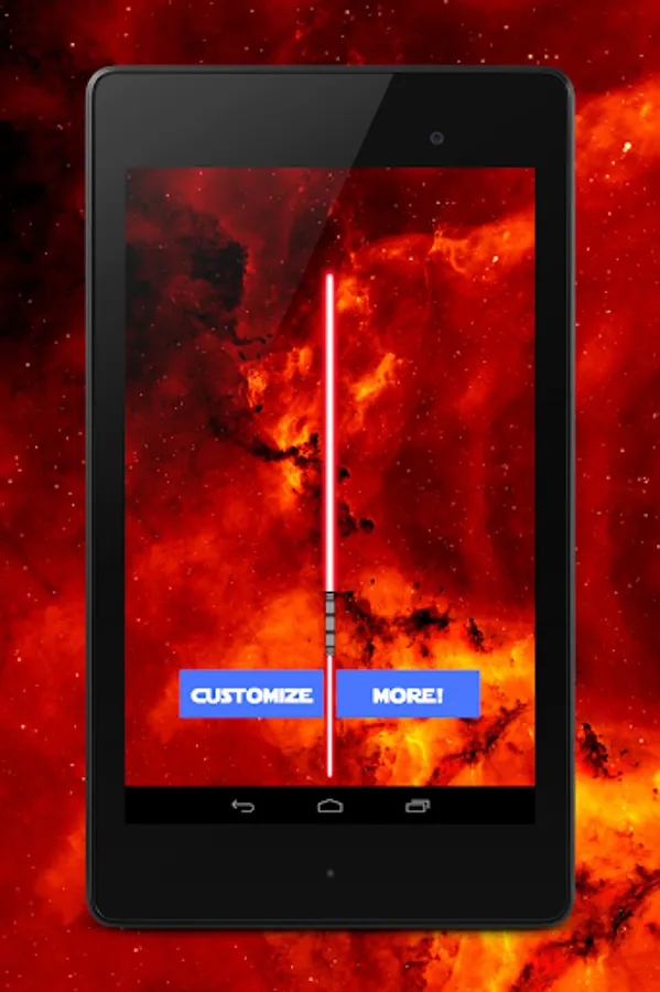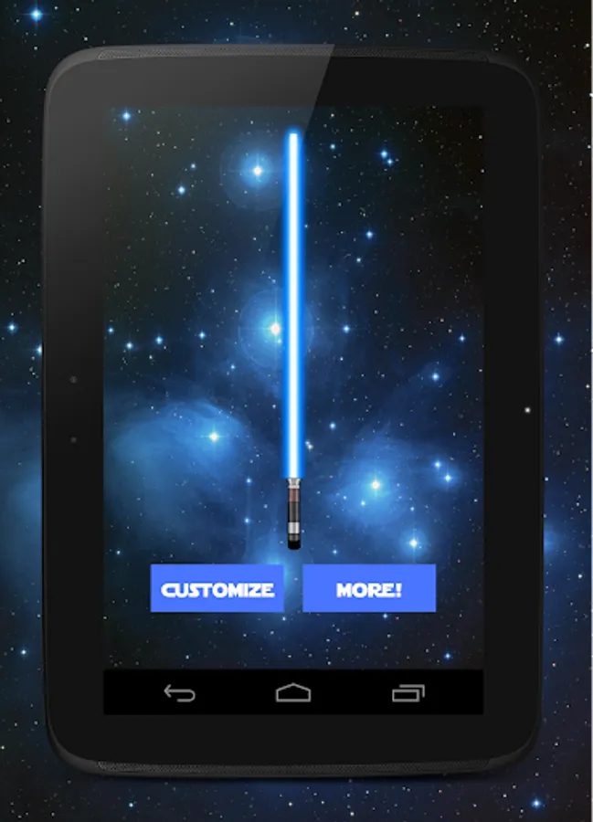 Swipe your device through the air and feel the power within as you sway and swing with your futuristic weapon! Engage in battles with your powerful beam - battle to the death and betray your friends, strangers, pets and maybe even your own son!