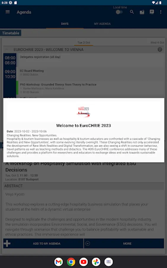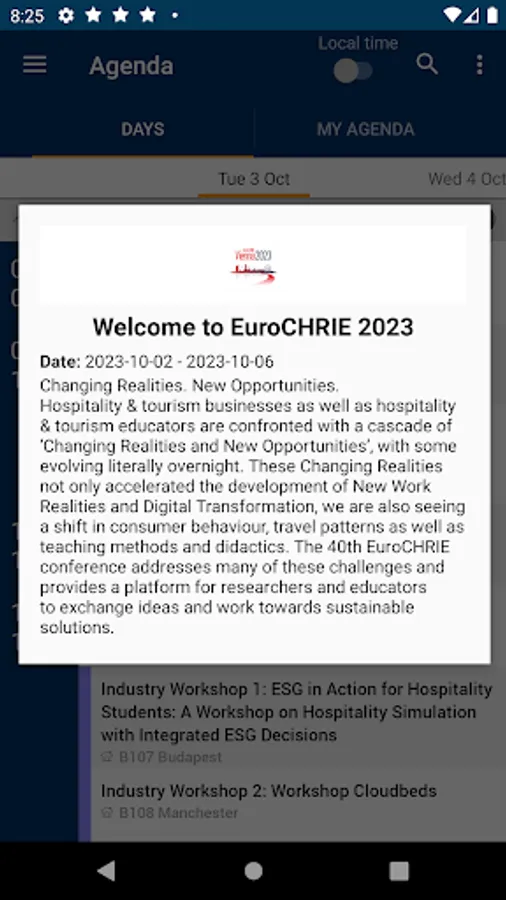 Download this EuroCHRIE 2023 App to conveniently access this year’s program, information on exhibitors and social events. Use it to create your personal agenda and keep track of program changes. Take notes, connect with other delegates and find information about speakers.