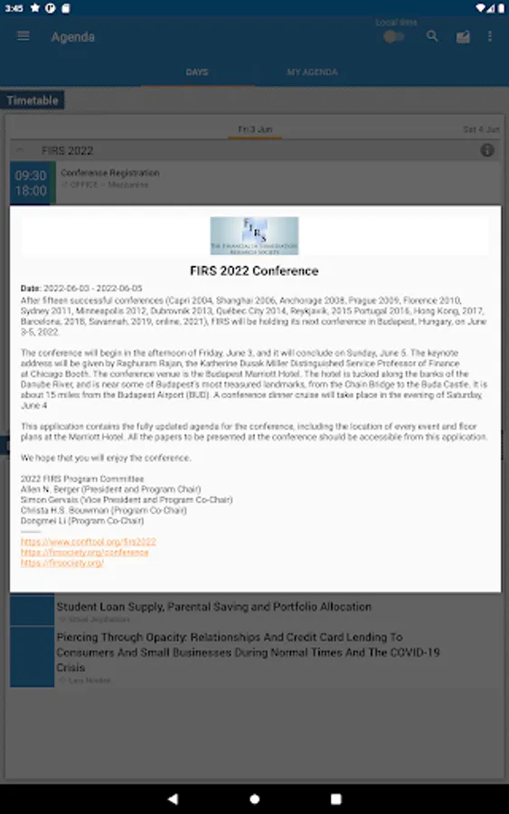 This application contains the fully updated agenda for the conference, including the location of every event and floor plans at the Marriott Hotel. All the papers to be presented at the conference should be accessible from this application.