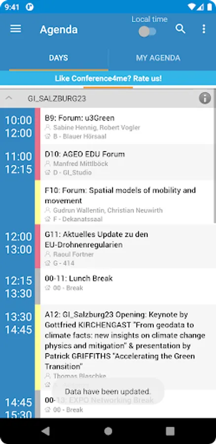 GI_Salzburg provides a platform for dialogue among geospatial minds, informing the GeoInformation Society, contributing to a more just, ethical and sustainable society. It is the annual meeting place for innovation, networking and continuing education from all areas of Geoinformatics. Interdisciplinary discussions, forward-looking ideas and a personal atmosphere accompany and shape the exchange of science and research, business and application.