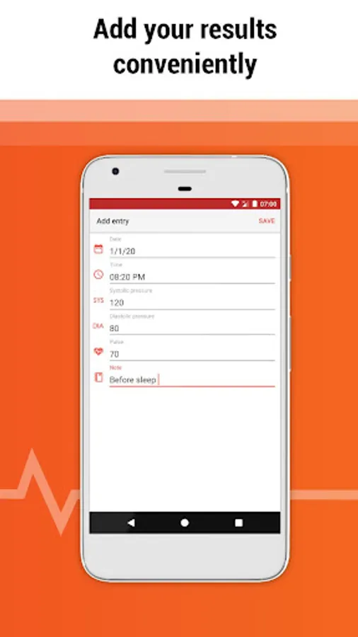 Handy pulse and blood pressure journal in which you can save your measurement results with optional note and keep track of your health condition regularly. The application is able to rate every entry according to the current medical standard. Correctness of these classifications is ensured by the medical consultant but remember that no application can be a substitute to doctor's appointment. We advise you to go to the specialist whenever you notice repeating high or low results.