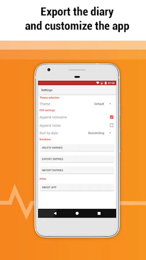 Exporting journal to the PDF file gives you ability to send or print and show it to the doctor in the quick and easy way.
