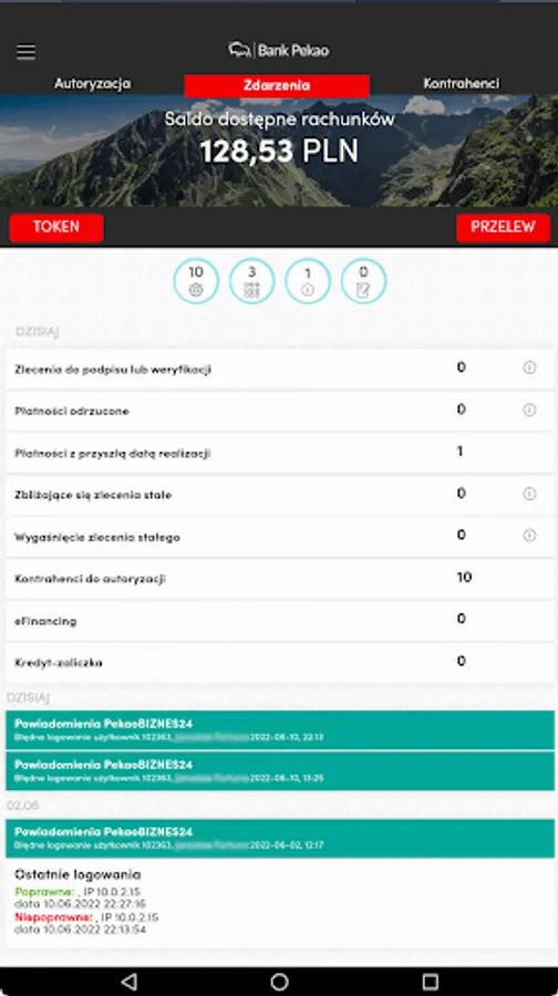 Application for business customers who have accounts with PekaoBiznes24 access and are authorized to use mobile banking.