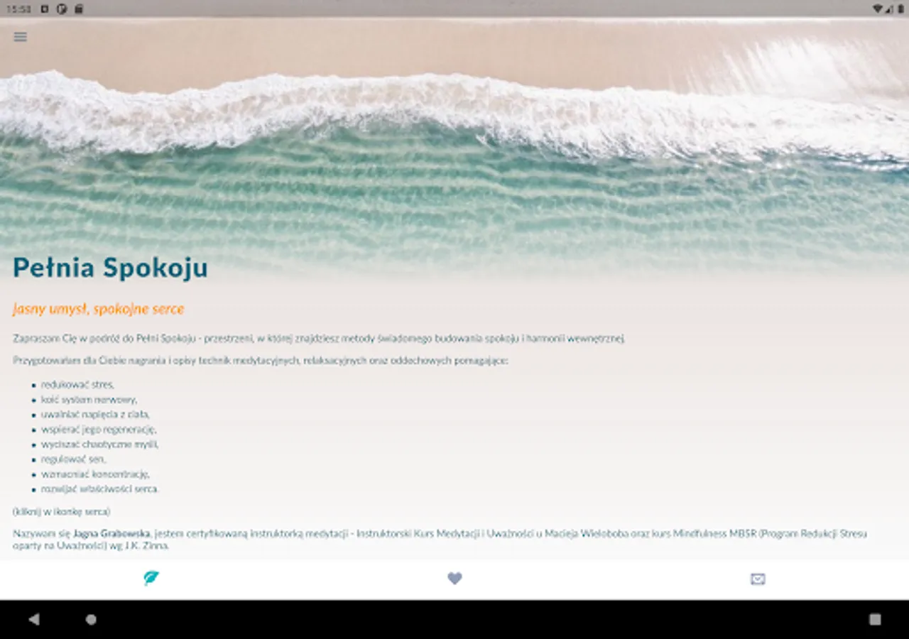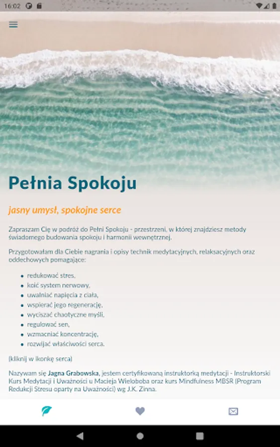 My name is Jagna Grabowska, I am a certified meditation instructor - Maciej Wielobob's Instructor Course in Meditation and Mindfulness and the Mindfulness MBSR course (Stress Reduction Program based on Mindfulness) according to J.K. Zinna.
