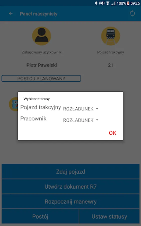 The task of the module is to analyze and reflect the current status for the Locomotive, Train Driver, Trip.