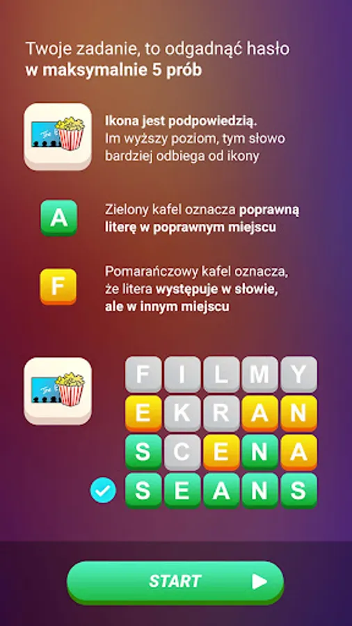 - if a given letter appears in the password, but it is in the wrong place, it will be highlighted in yellow,