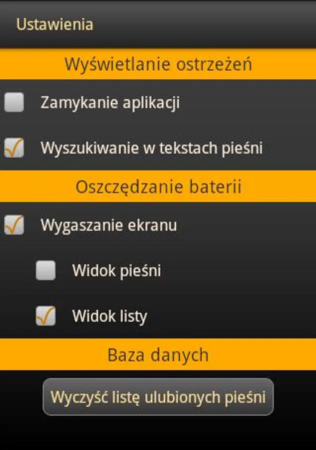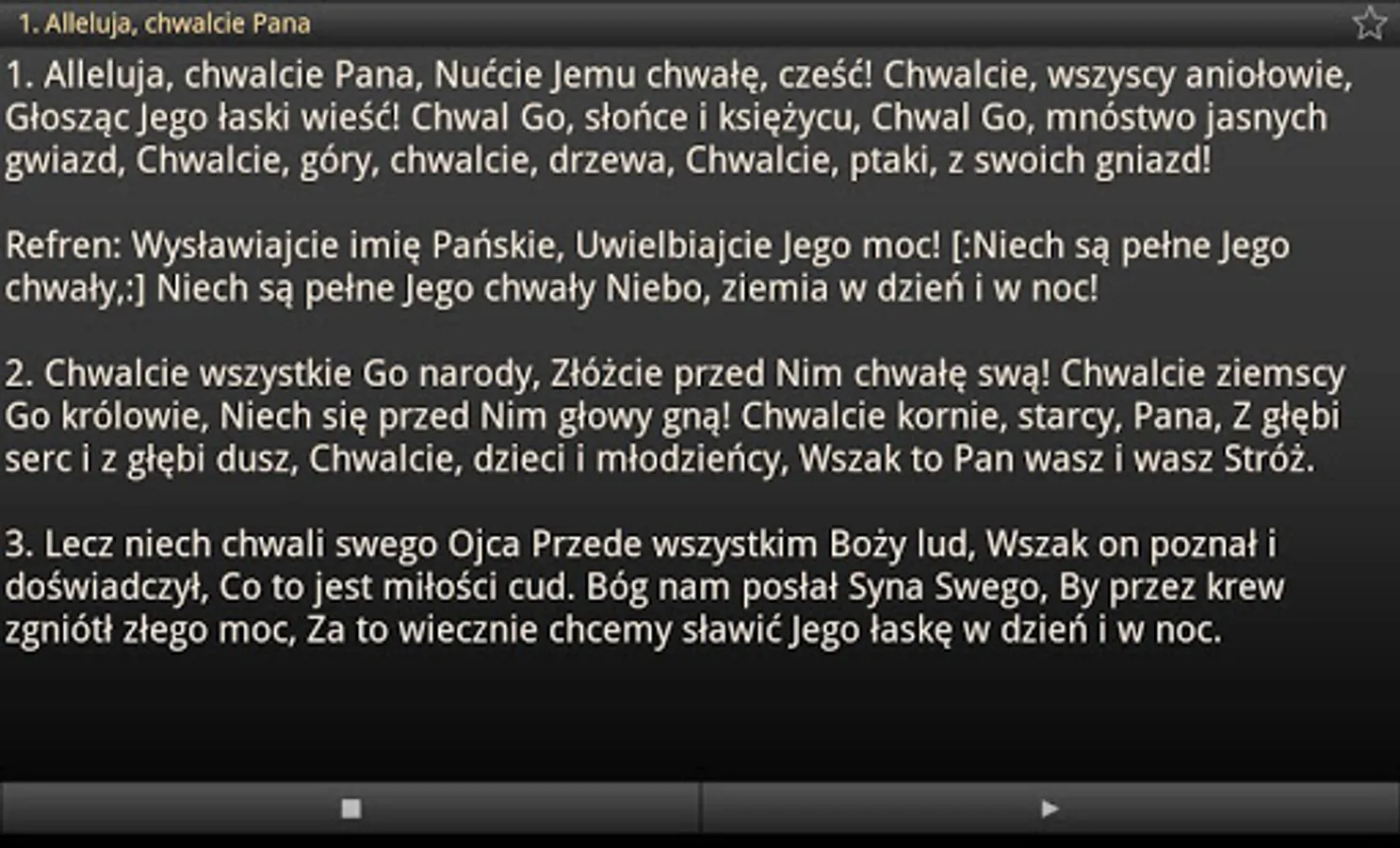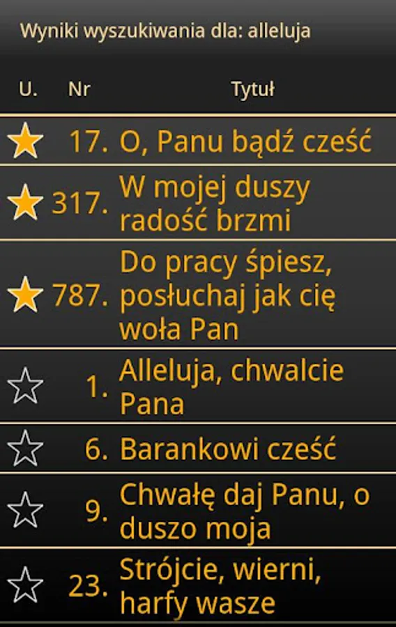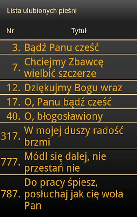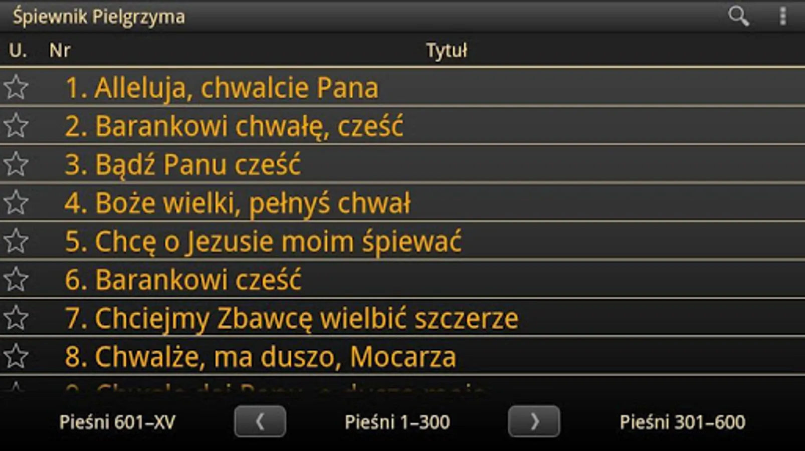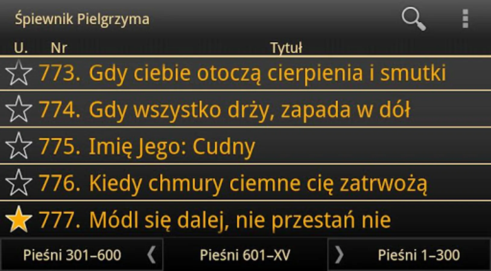 The application allows you to quickly search by number, title and text of the song. There is also the option to create a list of favorite songs.