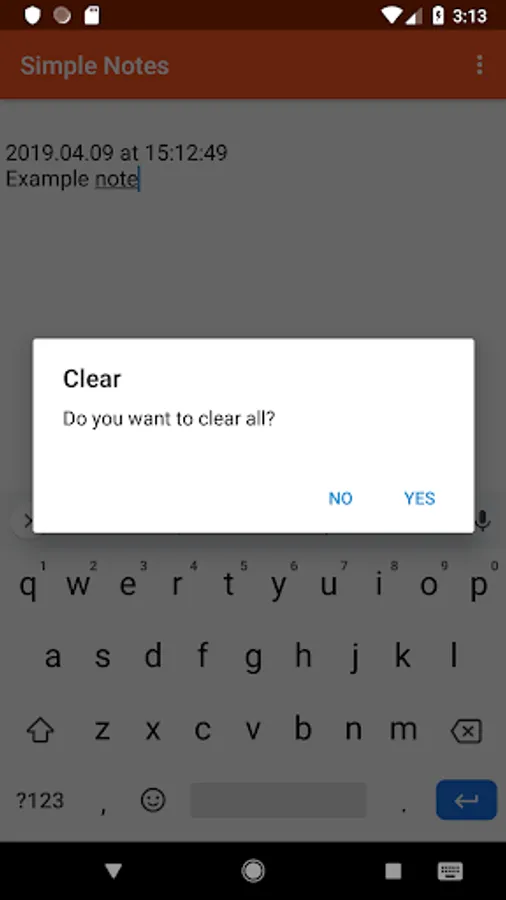 The simplest way to make notes on your phone. All in one window! If you want yo can add date and time with one click of a button and clear all the notes with another click.