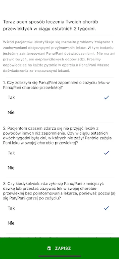 An application that helps to improve patient-doctor cooperation through daily notifications and surveys in relation to adherence to recommendations and taking medications on a permanent basis.