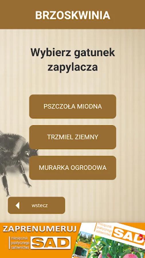 Application helps determine the optimal number of hives or cocoons masonry garden for proper pollination of fruit crops.
