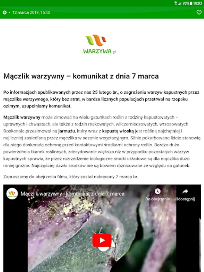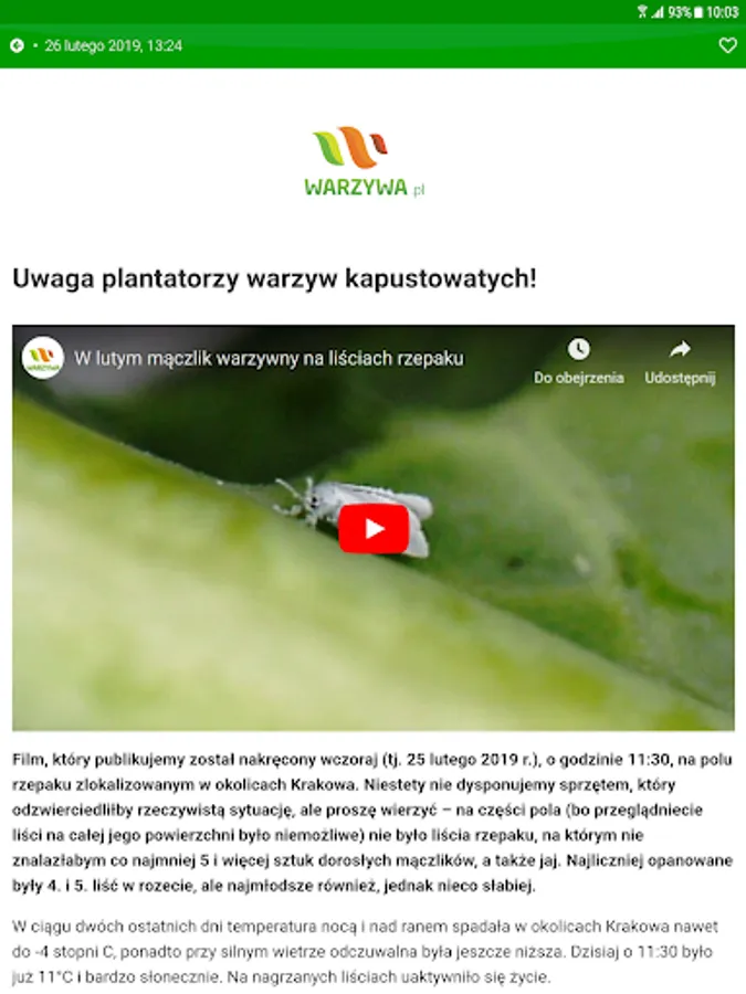 With this application you do not have to search multiple websites daily to get the latest messages vegetable. The application collects them from different companies: horticultural advisors, producers of plant protection products and fertilizers, and other entities that prepare advice and information for farmers.