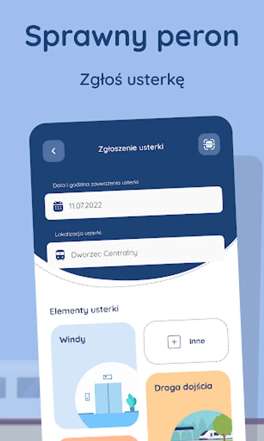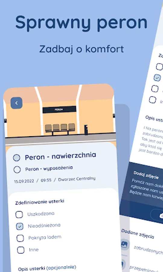 The Efficient platform application is a tool that allows you to report defects related to platforms and access roads at stations and railway stops. Thanks to it, people traveling by rail can quickly and easily report irregularities that negatively affect the comfort of travel or pose a threat to the safety of travellers. The application allows you to report a defect with a photo or description.
